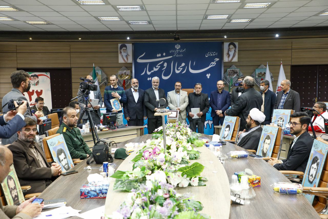 به گزارش روابط عمومي استانداري چهارمحال و بختياري، در اين آيين از ۶ اثر شامل کتاب، فيلمنامه و محصولات چندرسانه‌اي در حوزه ايثار و شهادت رونمايي و از پدر شهيد يزدان قجري، برادر شهيد سيدرحمان حسيني، فرزند جانباز محمدصادق حيدري و سيدعلي احمدي از جانبازان و يادگاران هشت سال دفاع مقدس تجليل شد.