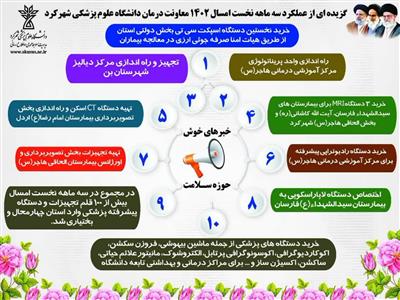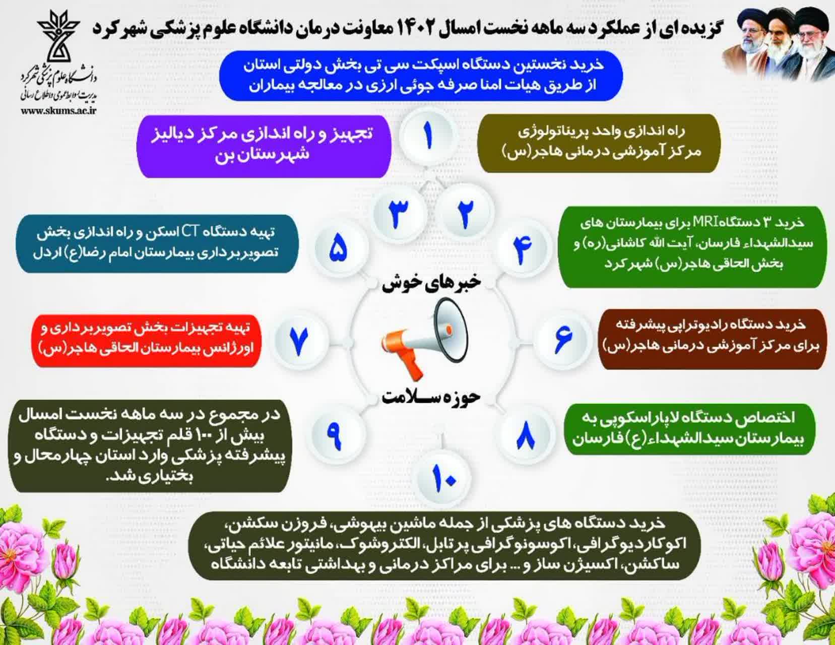 خبرهاي خوش حوزه سلامت استان در قاب اينفوگرافي کد خبر: 191938 تاریخ انتشار: 1402/05/09 20:27:02نمایش: 27182 اخبار حوزه سلامت استان در سالجاري با تحولات خوبي روبرو بوده است و تجهيزات و امکانات قابل توجهي به مجموعه درمان استان اضافه شده است.